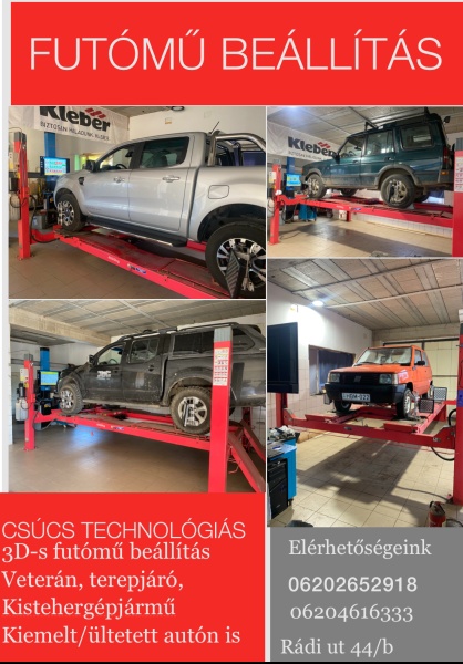 A Futómű beállítást HPA C880 3D- s futóműállitóval végezzük.
